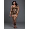 Abito con reggicalze in pizzo lavorato a maglia Queen Size con fodera in rete che esalta e definisce le curve femminili. Il modello presenta uno scollo a collo alto che si allaccia dietro al collo e calze con reggicalze fissi per un effetto seducente. Realizzato in pizzo floreale lavorato a maglia, morbido ed elastico, che garantisce una vestibilità comoda ed elegante. Il preizoma non è incluso.