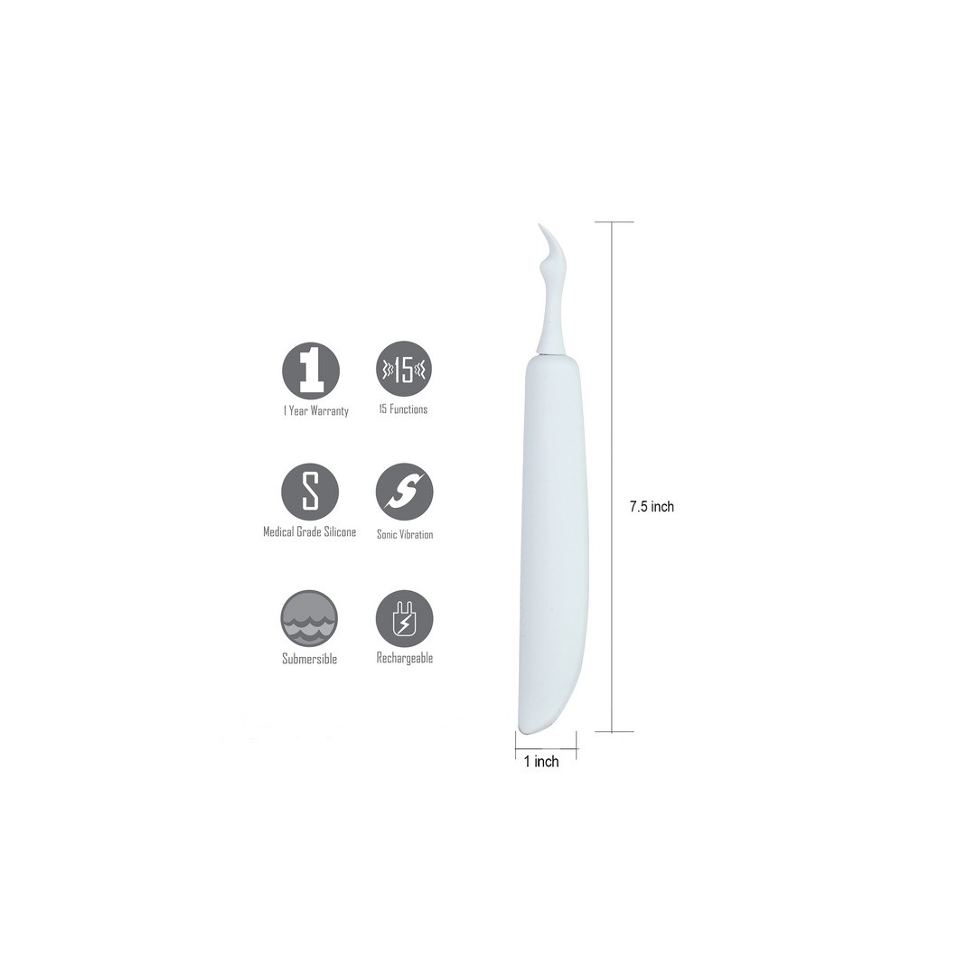 Stimolatore sonico compatto con 15 funzioni e 3 testine intercambiabili per un piacere personalizzato ovunque.