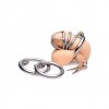 Gabbia di castità in acciaio inossidabile con chiusura interna e anelli regolabili per una sottomissione totale.