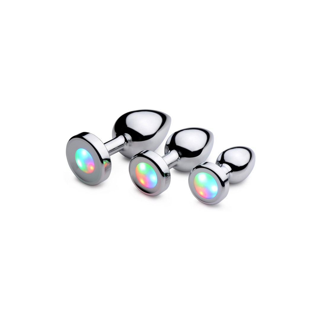 Plug anale metallico con luce LED — 3 modalità luminose per brillare nel buio con piacere, stile e divertimento senza limiti.