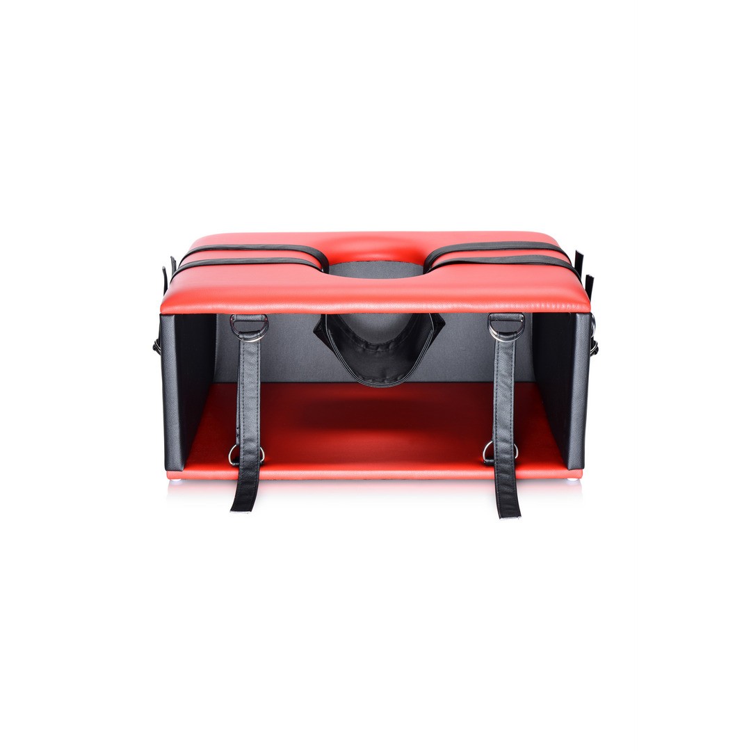 Il piano è dotato di un morbido cuscino con un'apertura dove è possibile posizionare la testa. Con le manette e gli anelli inclusi, è possibile posizionare il partner nella posizione perfetta.