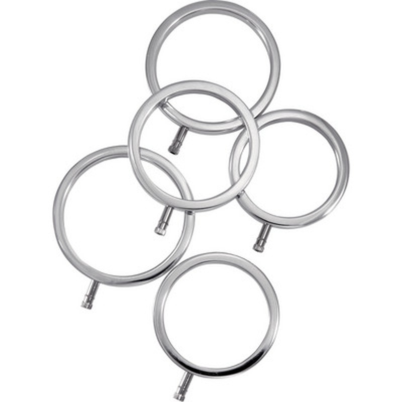 Set di 5 anelli per il pene ElectraRings in alluminio, compatibili con la stimolazione elettrosessuale.