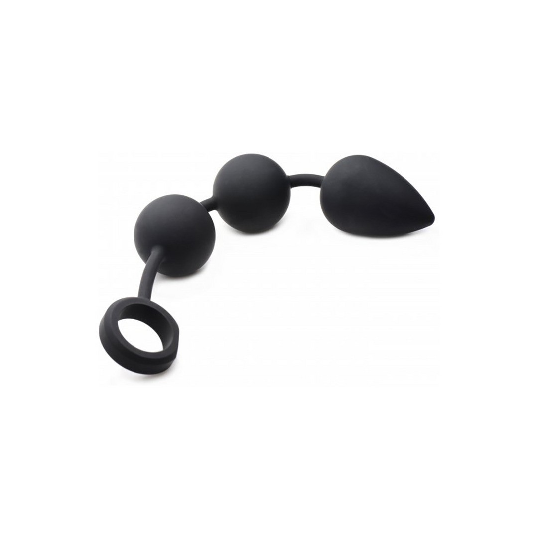 Perle anali rivestite in silicone pesante con punta affusolata e impugnatura di recupero per una stimolazione profonda e sicura.