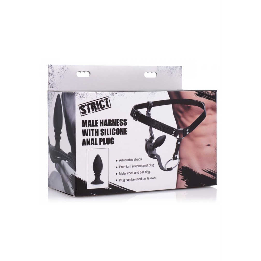 Mantieni il tuo partner deliziosamente soddisfatto e pronto all'azione con questa imbracatura a doppia funzione! Questo accessorio combina un anello fallico in metallo, solido e resistente, con un plug anale in silicone testurizzato. L'anello passa sotto il pene e lo scroto, favorendo un'erezione più solida e intensificando la sensibilità.