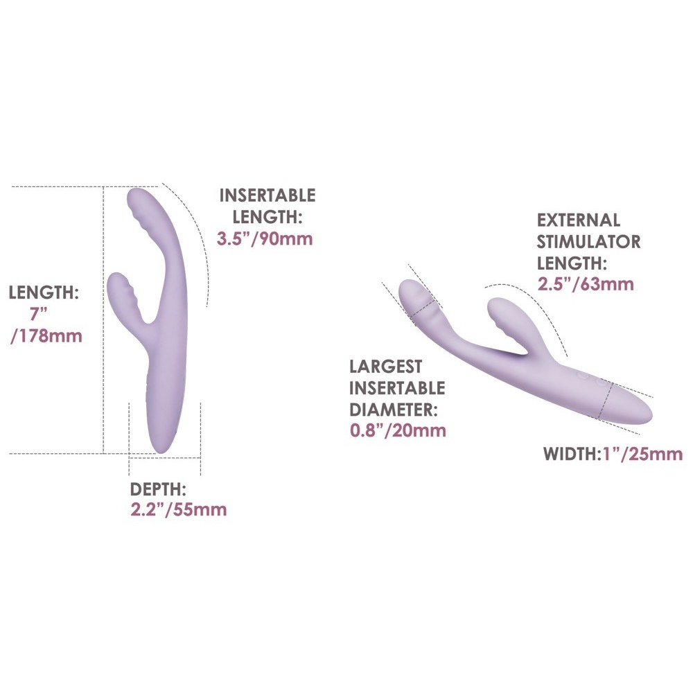 Il vibratore rabbit Cici 2 di SVAKOM, leggero e facile da impugnare, offre piacere sia vaginale che clitorideo. L'asta curva e stretta stimola efficacemente il punto G con la sua testa scanalata, offrendo una doppia stimolazione ideale per orgasmi intensi e combinati. Può essere utilizzato nella vasca da bagno o sotto la doccia, poiché è completamente impermeabile. Le vibrazioni, silenziose ma potenti, sono facilmente controllabili tramite un pulsante. La regolazione personalizzata delle vibrazioni, i giochi a distanza e l'interazione con il partner sono possibili tramite l'applicazione SVAKOM.