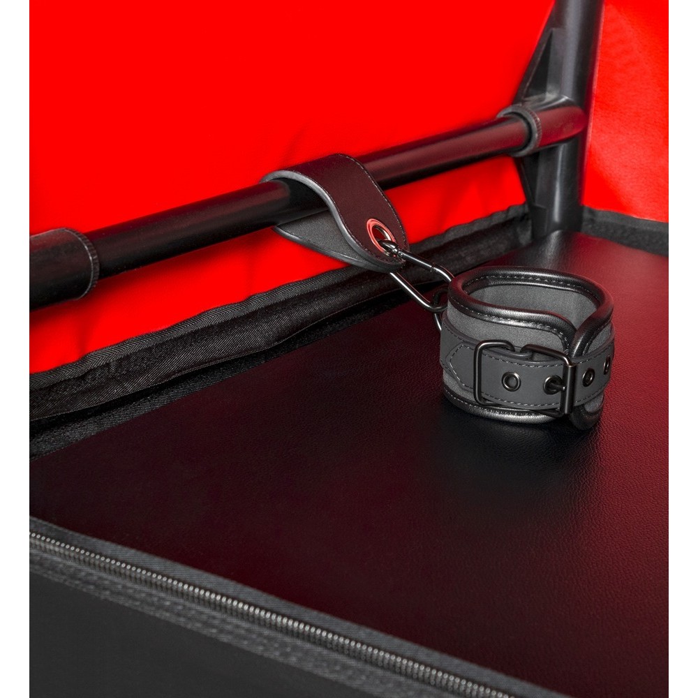 La scatola BDSM chiusa, Bukkake di Secret Dome, è perfetta per giochi fantasiosi e fuori dal comune. La robusta scatola, con il suo sistema di innesto a tubo e il robusto coperchio, può essere assemblata rapidamente e sarà pronta all'uso in pochissimo tempo. Con un grande foro su entrambi i lati. Il foro per la testa è dotato di una cerniera e di un ampio collare regolabile. Inoltre, offre un comodo accesso attraverso la porta con cerniera. L'illuminazione a LED e il morbido tappetino garantiscono un grande comfort. Le manette in dotazione possono essere posizionate all'interno a seconda delle necessità. Le morbide manette imbottite possono essere indossate e regolate rapidamente grazie alle fibbie di chiusura.