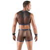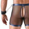 Un top corto e aderente, pantaloni enfatizzanti e 2 manette di Svenjoyment Bondage in un set. Il set è realizzato in morbida ed elastica rete nera trasparente con un bellissimo materiale wetlook blu metallizzato cucito.