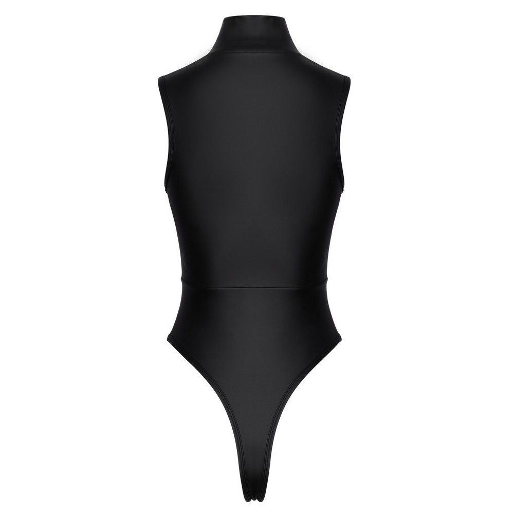 Il body in evidenza di Cottelli PARTY è realizzato in look opaco nero di tendenza. È dotato di una lunga cerniera con strass scintillanti. La cerniera va dal collo alto fino al cavallo. Il body è in stile perizoma e ha gambe molto alte che mettono in risalto le gambe e i glutei. Il materiale elasticizzato dall'aspetto opaco aderisce al corpo in modo aderente ma confortevole.
