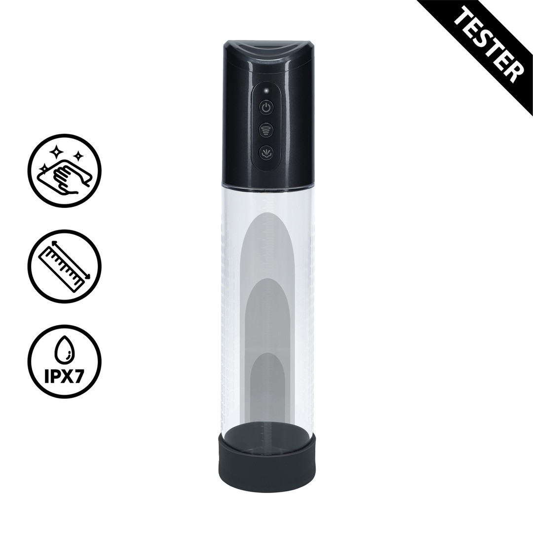 HyperPump ti offre ampie possibilità di aumento del pene. La guaina di inserimento è in morbido silicone, garantendo un'esperienza confortevole. Con un semplice tocco, la pompa estremamente potente crea un vuoto molto forte, fornendo erezioni rapide e potenti.