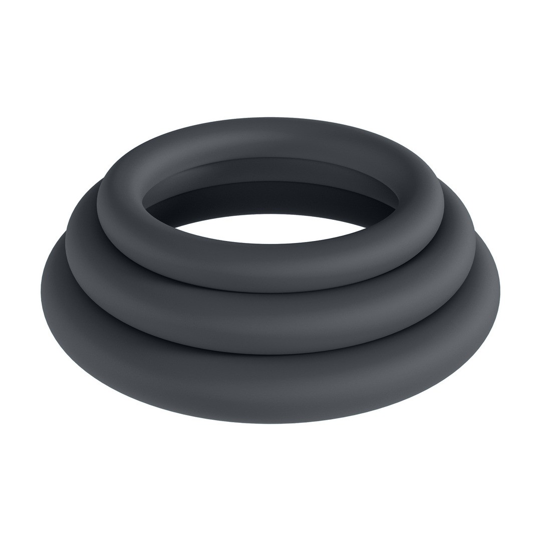 Trio di anelli per il pene in silicone nelle taglie dalla L alla XXL, per una vestibilità personalizzata e un piacere versatile.