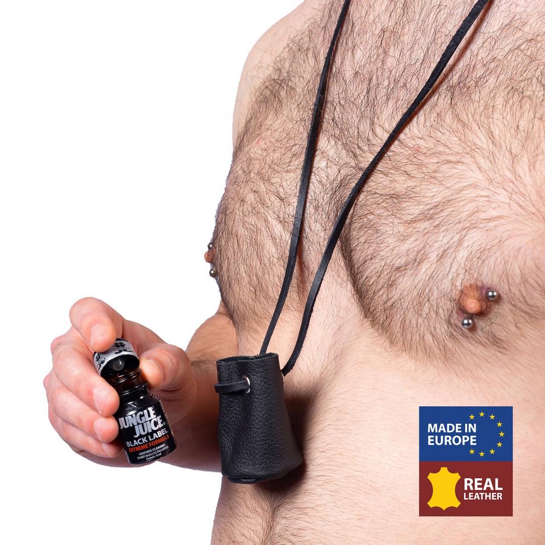 Borsa in pelle progettata per trasportare il tuo flaconcino di detergente per pelle con stile e praticità.