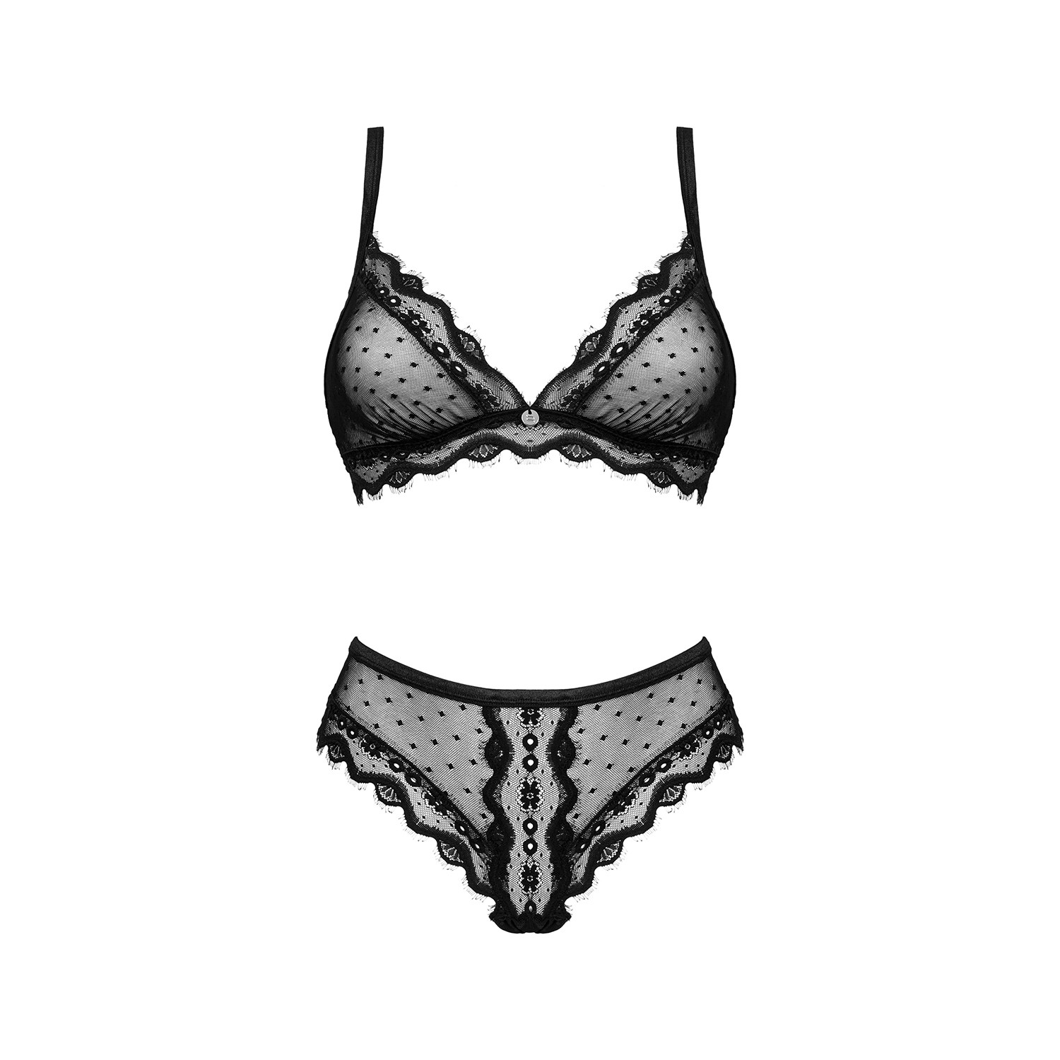 Conjunto de lingerie extremamente sensual e feminino, perfeito tanto para uma noite quente com a sua cara metade como para o uso diário por baixo das suas roupas! Deixe-se levar por uma sensação sensual 24 horas por dia, envolvendo o seu corpo na delicadeza dos materiais desta maravilha da coleção Marrbel!