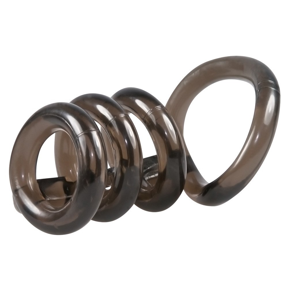 Quatro anéis penianos unidos por uma estimulante ponte de ligação dentada.