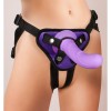 Arnês em imitação de pele com três anéis de diferentes diâmetros: 4 cm, 4,5 cm e 5 cm.