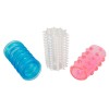 Conjunto de três mangas suaves para o pénis, feitas de material flexível tipo silicone, que se ajustam firmemente. As múltiplas saliências e nódulos estimulantes proporcionam uma estimulação extra ao seu parceiro.