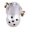 Duche anal prateado com 5 orifícios de pulverização na parte superior e uma rosca normal para mangueiras de duche. A válvula especial reduz o caudal e a pressão da água.