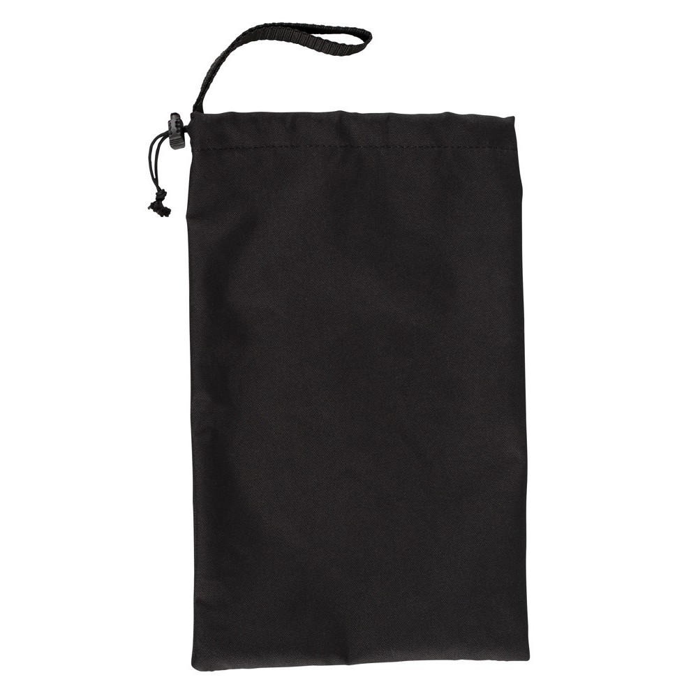 Bolsa de armazenamento preta com fecho de laço. Aproximadamente 24 x 35 cm.