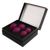 Conjunto de bolas do amor composto por 1 bola simples e 2 bolas duplas, com três níveis de peso crescente para um treino progressivo do pavimento pélvico. À medida que as bolas se tornam mais pequenas, os músculos devem trabalhar mais para as manter no lugar. A rotação dos pesos no interior provoca oscilações que estimulam contrações musculares de reforço. Ideal após a gravidez e como prevenção da incontinência. Textura Soft Touch amiga da pele e equipada com uma tira elástica de retração com anel.