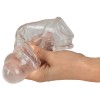 A manga transparente para o pénis com extensão e anel esférico da Crystal Clear apresenta veias pronunciadas e ajuda o pénis a atingir a sua melhor forma para momentos de prazer intensos e gratificantes. A manga de apoio à ereção ajusta-se perfeitamente ao pénis ereto, sendo fabricada em material macio e elástico. O anel esférico integrado adapta-se de forma firme mas confortável, impedindo que a manga escorregue. O grande diâmetro exterior e a espessura do material aumentam significativamente a circunferência do pénis. A glande sólida prolonga o pénis em cerca de 5 cm.