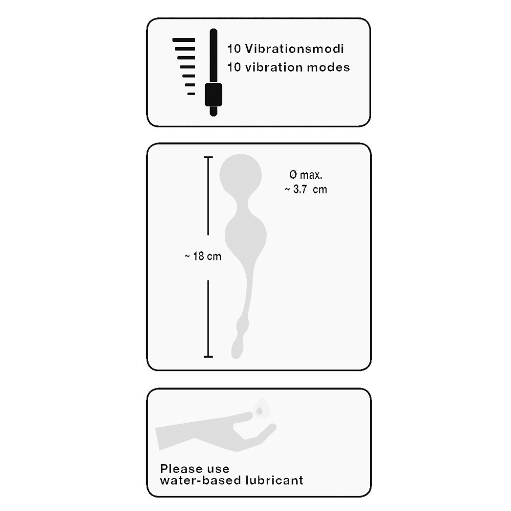 Estas bolas vaginais vibratórias cor-de-rosa, com detalhes decorativos prateados, estimulam e massajam com dez modos de vibração potentes. Ao mesmo tempo, ajudam a treinar os músculos vaginais e do pavimento pélvico, contribuindo para uma maior firmeza e sensibilidade durante o sexo, podendo também auxiliar na prevenção da incontinência. Um brinquedo de luxo indispensável em qualquer coleção erótica.