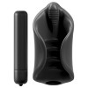 Maturbador preto, flexível, com vibração e textura interior estimulante e pronunciada.
