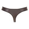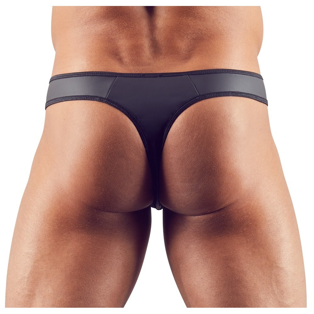 Esta tanga preta destaca-se pela excitante combinação de material mate-brilhante e powernet. As costuras e os rebordos têm pequenos pontos, enquanto riscas elegantes sobre as inserções transparentes convergem para o centro da bolsa. Esta tanga sensual é muito confortável e realça o rabo de forma irresistível, graças ao material elástico.