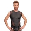 Camisa preta sem mangas da NEK, confeccionada em material de aspeto mate, com inserções de rede transparente nos lados e sobre a parte frontal dos ombros, realçando o visual masculino.