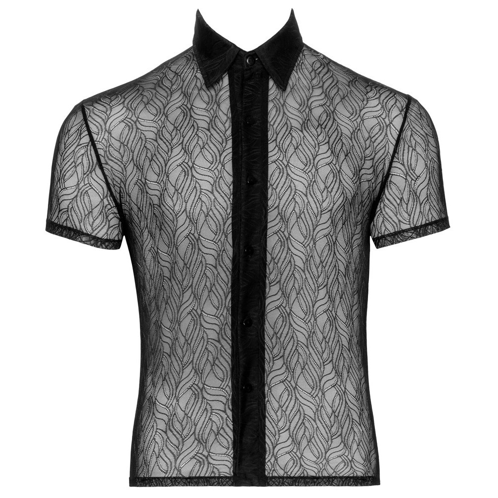Camisa Svenjoyment de meia-manga, justa e elegante, confecionada em renda fina, macia e elástica. Com gola clássica e carcela de botões ao longo de toda a frente, combina sofisticação com um toque subtilmente provocador.