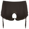 Estas cuecas pretas são extremamente sensuais, com abertura na zona das virilhas. Possuem quatro tiras de ligas ajustáveis e amovíveis, além de elegantes inserções de renda à volta das pernas. O material resistente na parte frontal modela ligeiramente o abdómen, conferindo conforto e estilo.