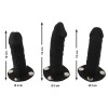O arnês strap-on da Bad Kitty apresenta um visual elegante em pele e inclui três dildos em silicone de diferentes tamanhos, que podem ser fixados à frente ou no interior através de botões de pressão. Esta versatilidade permite alternar facilmente entre dar e receber prazer.