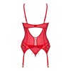 O conjunto Ingridia da Obsessive combina um corpete com ligas em renda elástica macia com tule fino e uma tanga delicada. As copas almofadadas com aros elevam e sustentam os seios, enquanto as alças, tiras de ligas, fecho de gancho e laço nas costas são ajustáveis para um ajuste perfeito e confortável.