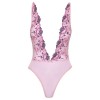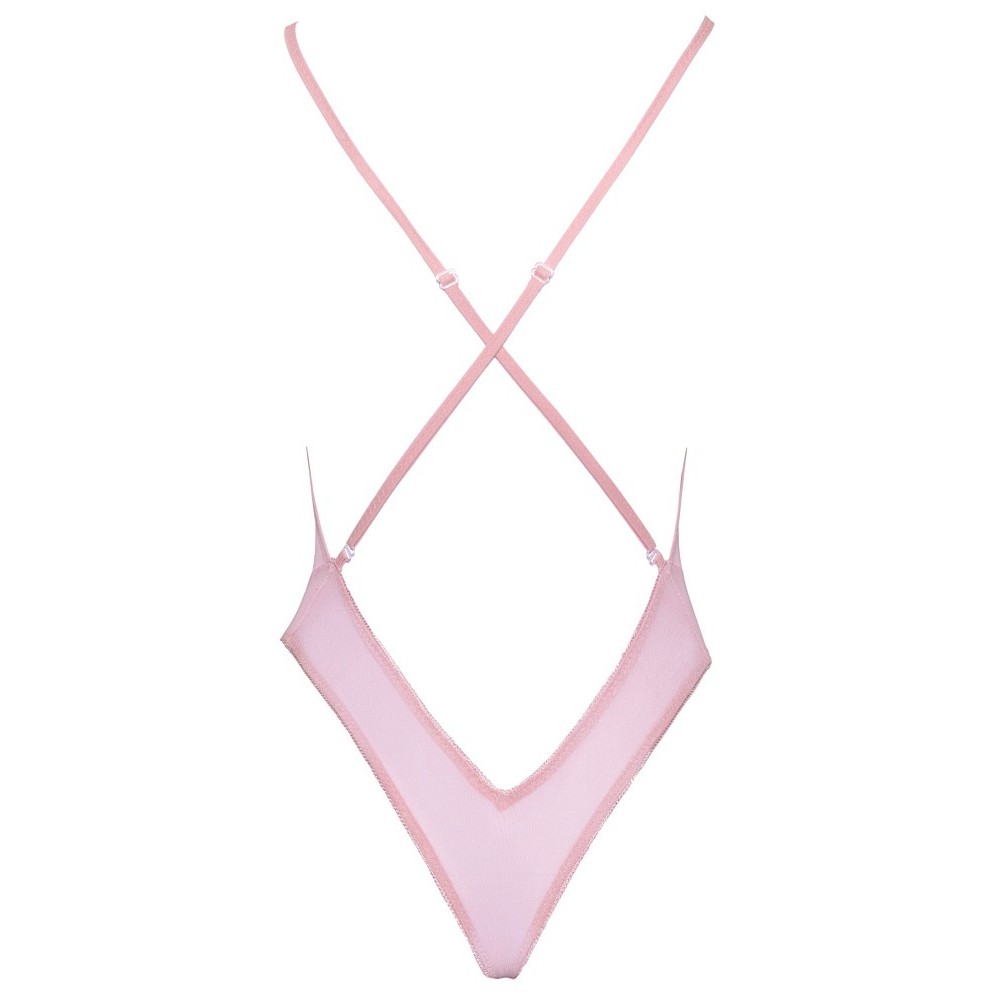 Body muito decotado da Kissable, confecionado em delicado tule cor-de-rosa com elaborados bordados florais. Macio e elástico para um conforto excecional ao vestir. Apresenta alças ajustáveis cruzadas na parte de trás para um ajuste perfeito.