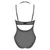 O body Selinne preto da Obsessive combina rede elástica macia com copas opacas em microfibra macia e aros em rosa contrastante, realçando o busto de forma elegante. As costas abertas com fecho de gancho ajustável e o decote haltere com alças ajustáveis garantem um ajuste perfeito, unindo conforto e sensualidade num só modelo.