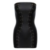 Vestido curto sem alças em preto mate elegante, com corte justo que valoriza a silhueta. Detalhes de ilhós metálicos rosa-dourado com atacadores decorativos à frente criam um efeito ampulheta. Tecido macio e altamente elástico para máximo conforto.