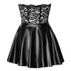 Vestido curto sem alças da Noir, com corpete tipo espartilho, confeccionado numa elegante combinação de renda delicada na parte superior e powerwetlook na saia. Macio e elástico, proporciona máximo conforto. A parte superior ajusta-se ao corpo como uma segunda pele, com reforços de modelação integrados e fecho de gancho à frente. A saia luxuosa em powerwetlook mate cintilante apresenta um efeito baloiçante sedutor.