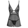 Camisa de noite curta da Cottelli LINGERIE em delicado powernet elástico. As copas em renda são unidas por uma elegante argola dourada. A faixa sob o busto e as alças do soutien encontram-se nas costas, também ligadas por uma argola dourada. As alças do soutien são ajustáveis para um ajuste perfeito. Inclui uma tanga clássica em powernet.