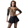 Minissaia preta plissada com um pequeno fecho de correr lateral.