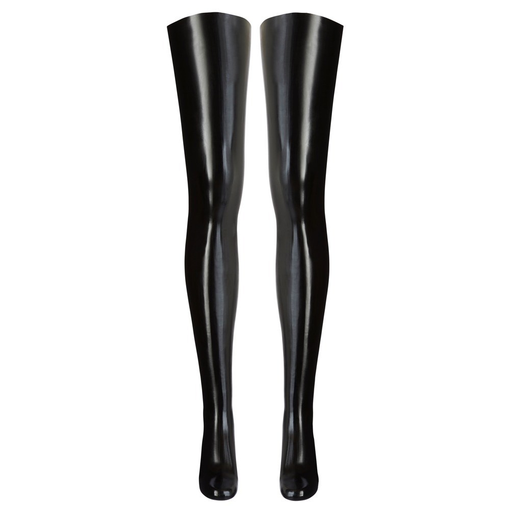 Meias até à coxa em látex brilhante, perfeitas para combinar com diferentes looks. Confortáveis ao usar e extremamente excitantes, destacam-se pelo brilho e pelo toque provocador.