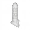Manga extensora para o pénis suave e texturizado, que aumenta o tamanho e intensifica o prazer a dois.