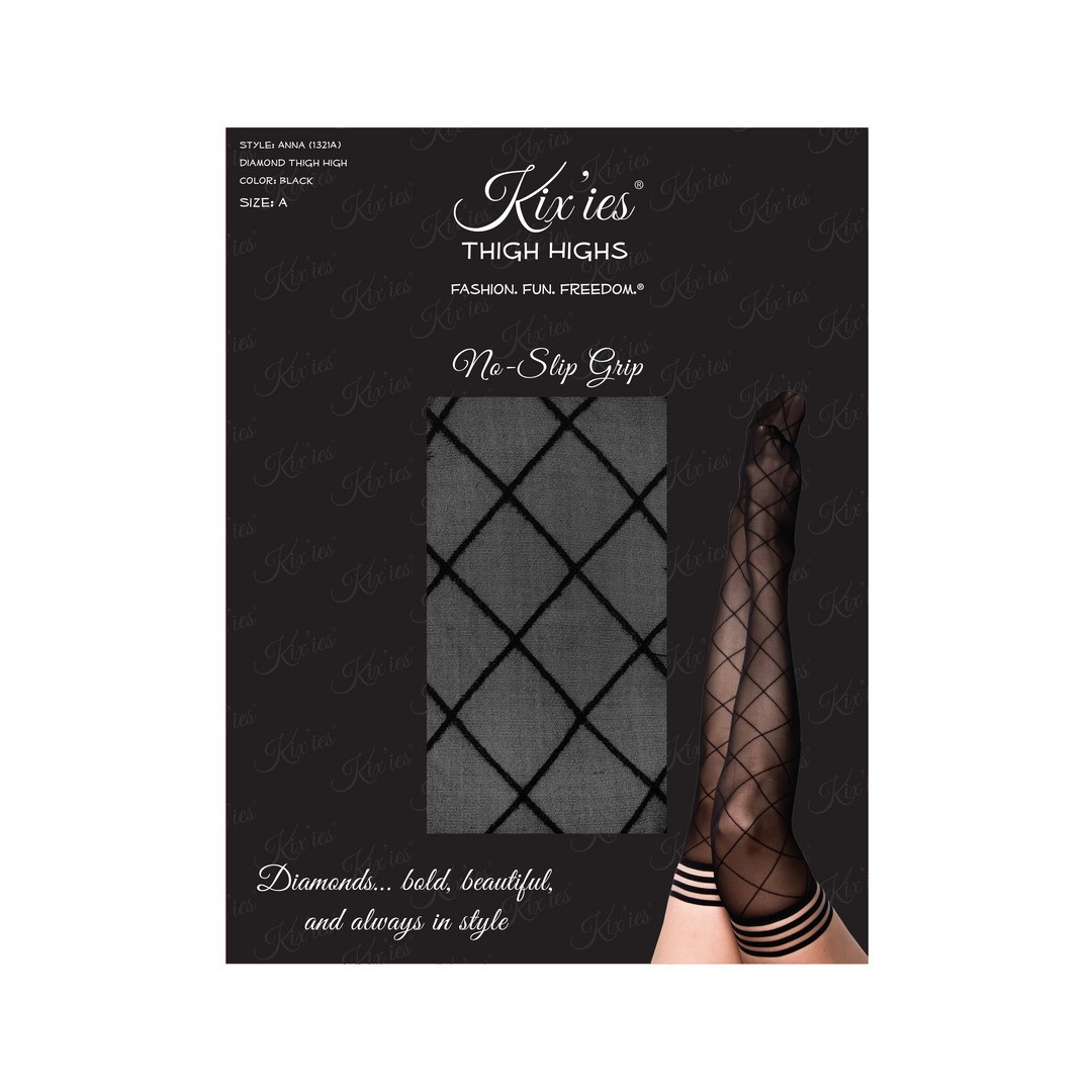 A Kix’ies é arrojada, bonita e sempre na moda, com um padrão de diamante transparente. As meias até à coxa Kix'ies são um acessório essencial no guarda-roupa, ideais do dia para a noite, e a forma perfeita de dar um toque especial a qualquer look. Concebidas para serem usadas confortavelmente durante todo o dia, contam com uma banda antiderrapante que as mantém sempre no lugar.
