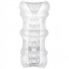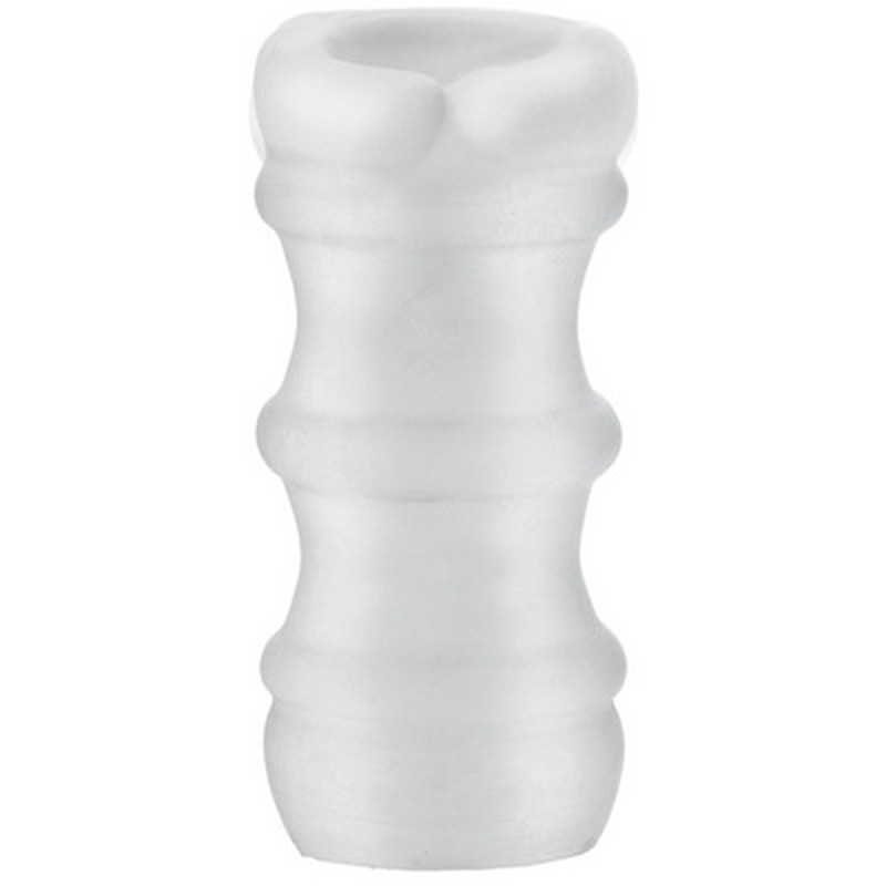 As pegas laterais para os dedos facilitam o controlo mesmo com lubrificante. Embora partilhem a mesma forma externa, as texturas internas variam significativamente. Este Mood Pleaser (Massage Beads) é de cor Frost, com contas de massagem internas aveludadas.