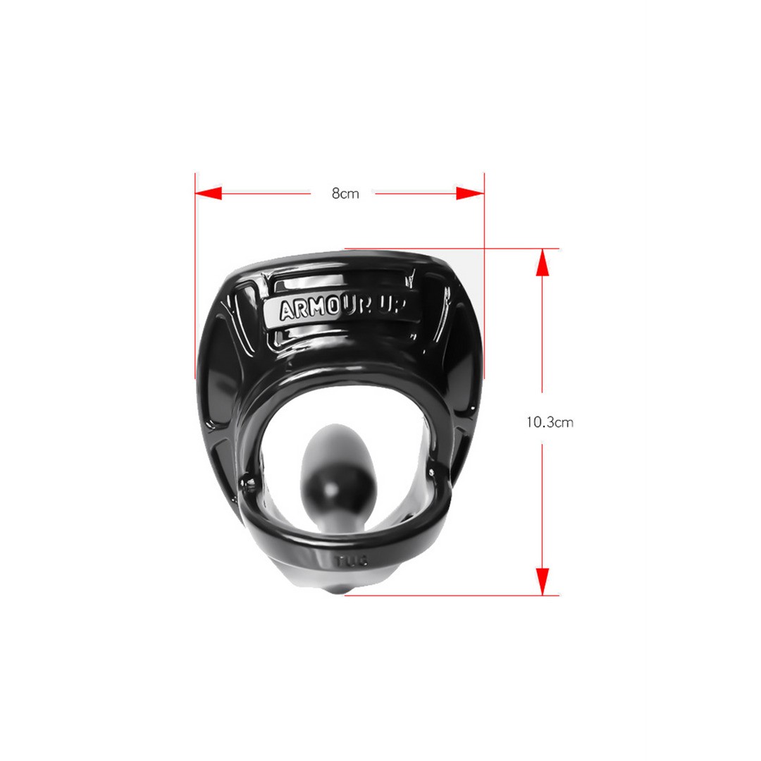 Armour Tug Lock anel para o pénis e testículos com plug anal integrado para estimulação total e prazer simultâneo.
