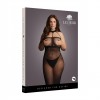 Vestido comprido com gola alta e decote haltere em padrões de rede contrastantes. Ajusta-se aos tamanhos XXL a 5XL. Confeccionado em 92% nylon e 8% spandex. Lavar à mão ou em programa delicado, com água fria. Secar na horizontal, não usar máquina de secar nem passar a ferro. Tanga não incluída.