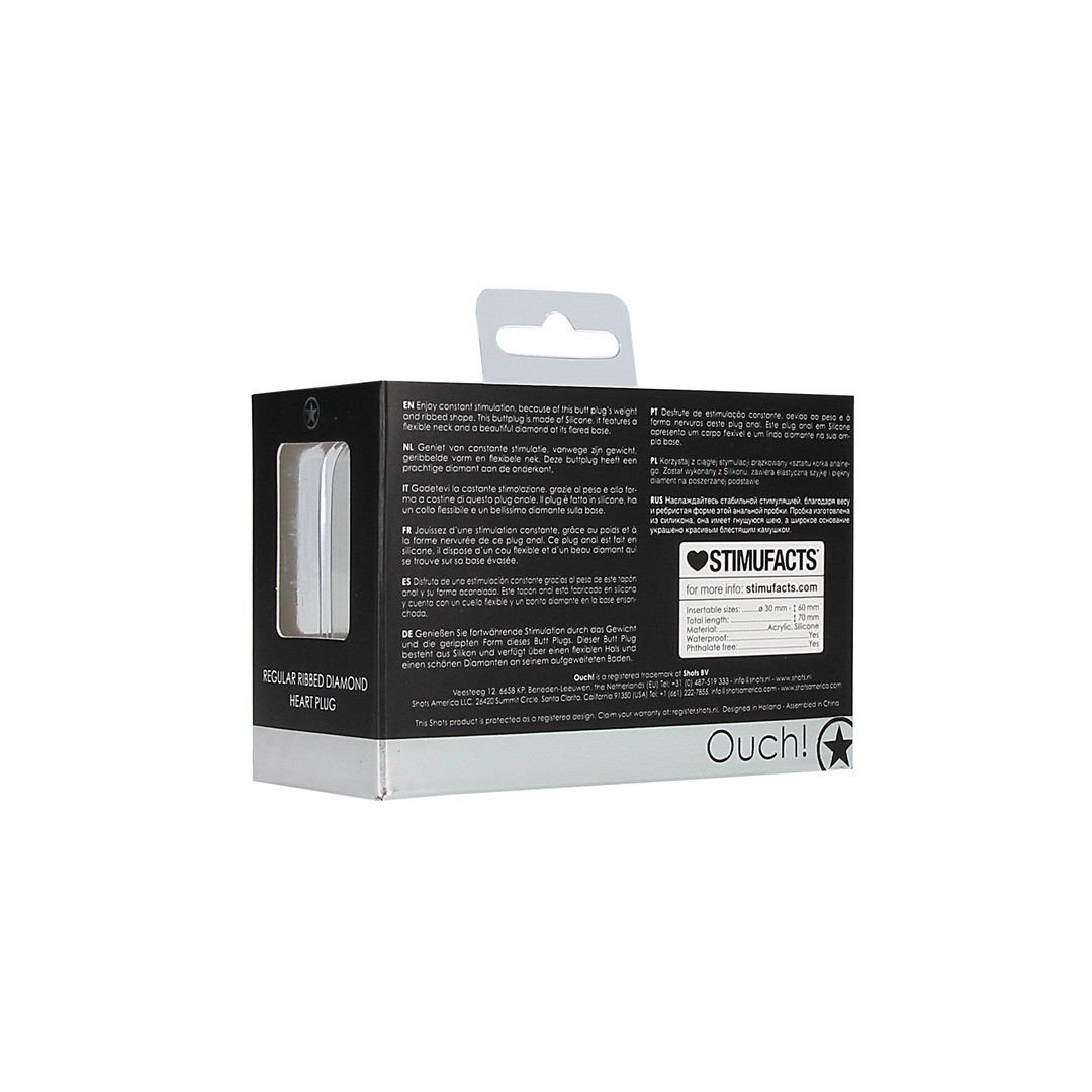 Explore novas sensações com este plug anal em silicone, de forma clássica com nervuras e base adornada com um deslumbrante diamante.