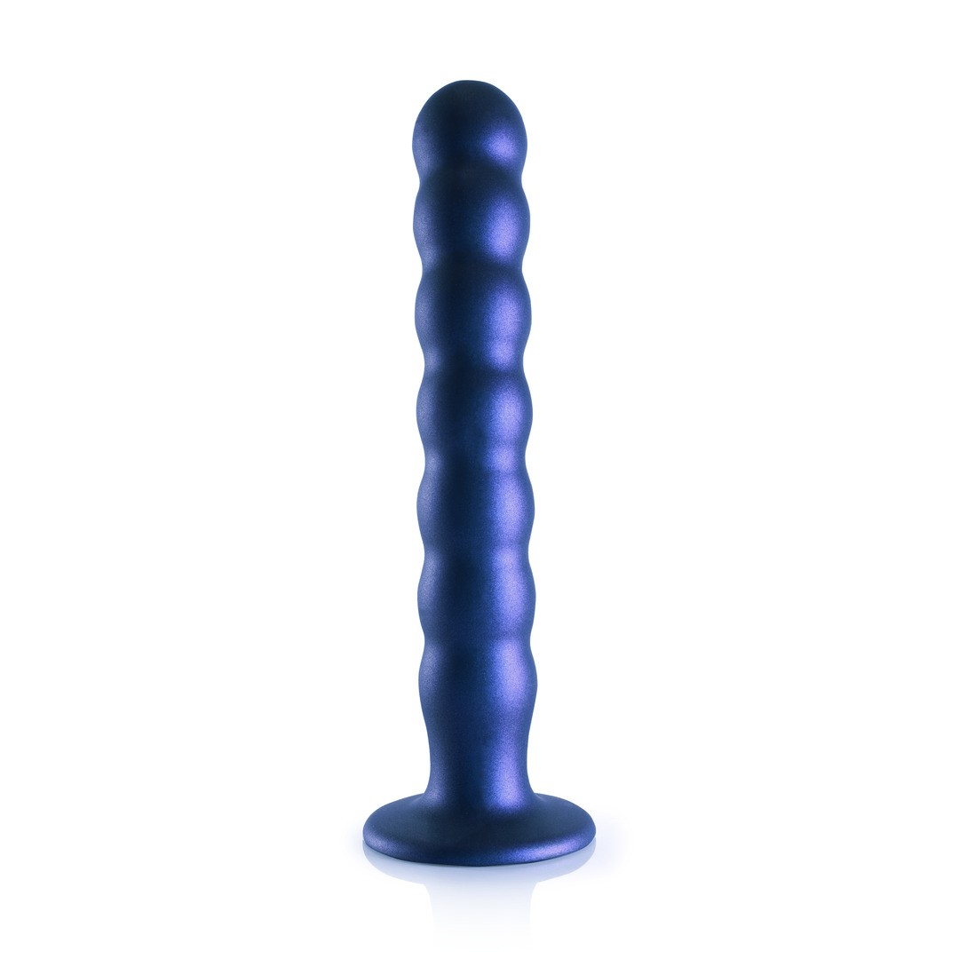 Dildo de silicone Ouch! Premium para ponto G, com pérolas, ventosa forte e elegante cor metálica.
