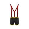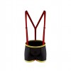 Fantasia de bombeiro masculino Male Power com calções e suspensórios ajustáveis em malha transparente e acabamento brilhante.