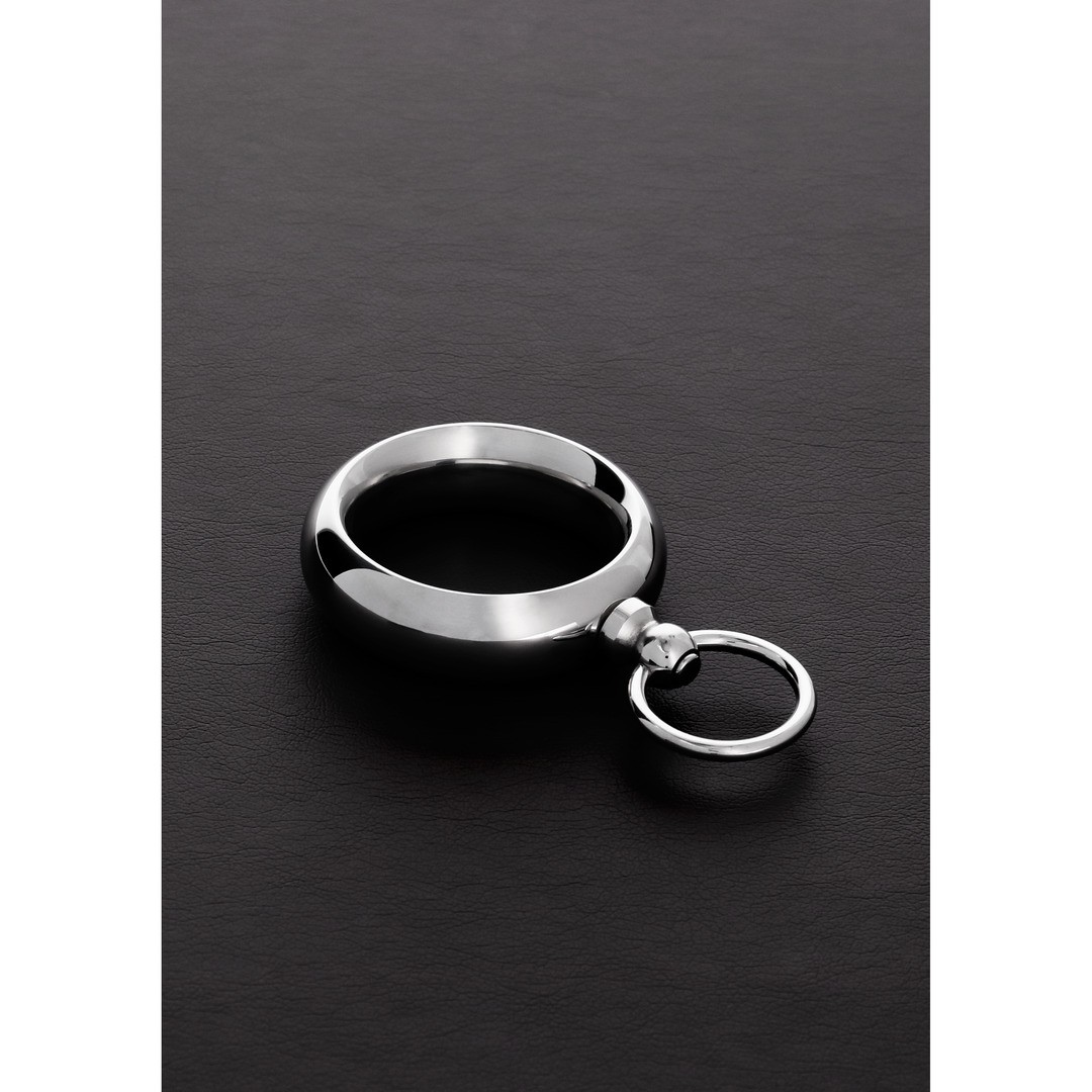 Este anel para o pénis de alta qualidade, com ilhó integrado, é meticulosamente fabricado em aço inoxidável. Devido ao seu peso e rigidez, é ideal para utilizadores experientes que procuram novas sensações.