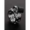 Anel de castidade Kalis Teeth Spiked em aço inoxidável, com espigões para penetração e extensor de testículos.