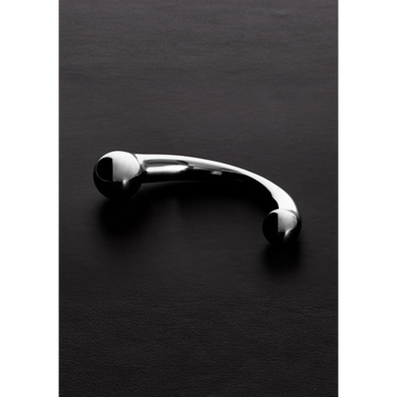 Varinha dupla em aço inoxidável, 23,5 cm, com ponta curva para estimulação do ponto G e próstata.