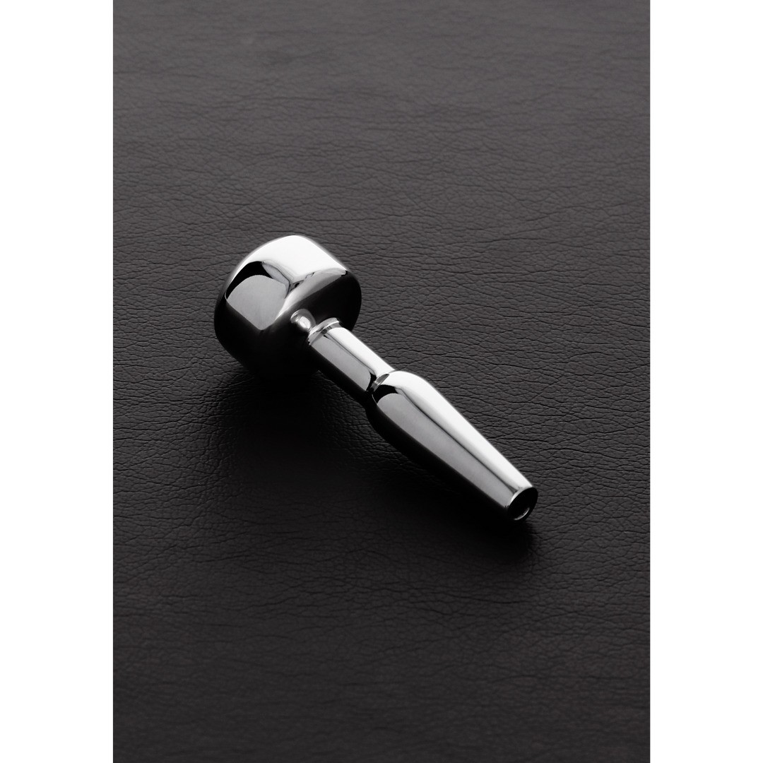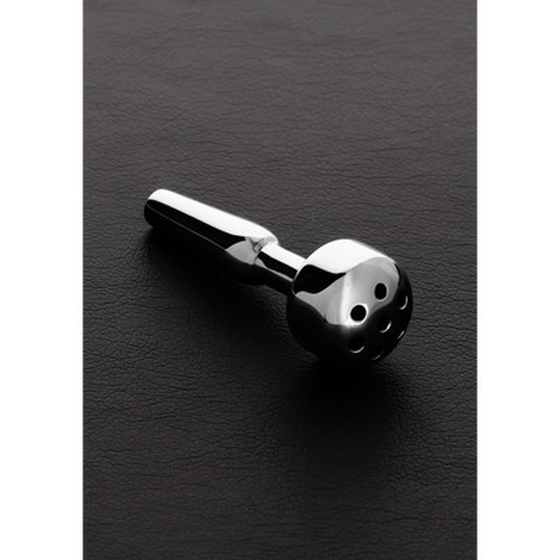 Plug de uretra Sprinkler em aço inoxidável cirúrgico, com acabamento polido e liso. Ideal para amantes de desportos aquáticos, oferece múltiplas possibilidades de uso, deixando a imaginação ditar o prazer. O comprimento inserível é de 3,5 cm e o diâmetro de 0,9 cm. Fácil de limpar, este brinquedo da gama Shots Steel é produzido com materiais de alta qualidade para segurança e durabilidade.